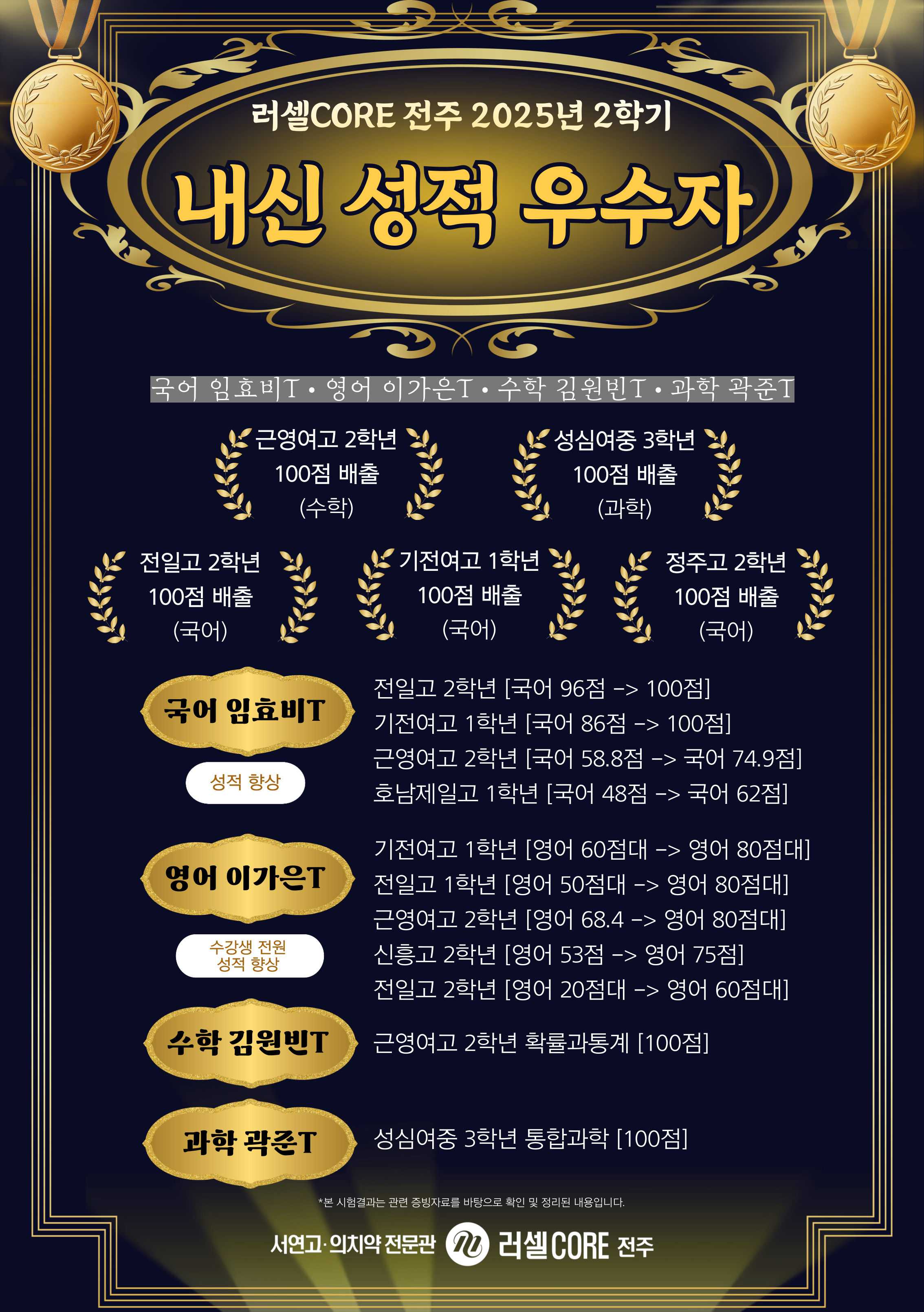 ¡Ú·¯¼¿ ÀüÁÖÇпø 2025³â 2Çб⠳»½Å ¼ºÀû ¿ì¼öÀÚ¡Ú