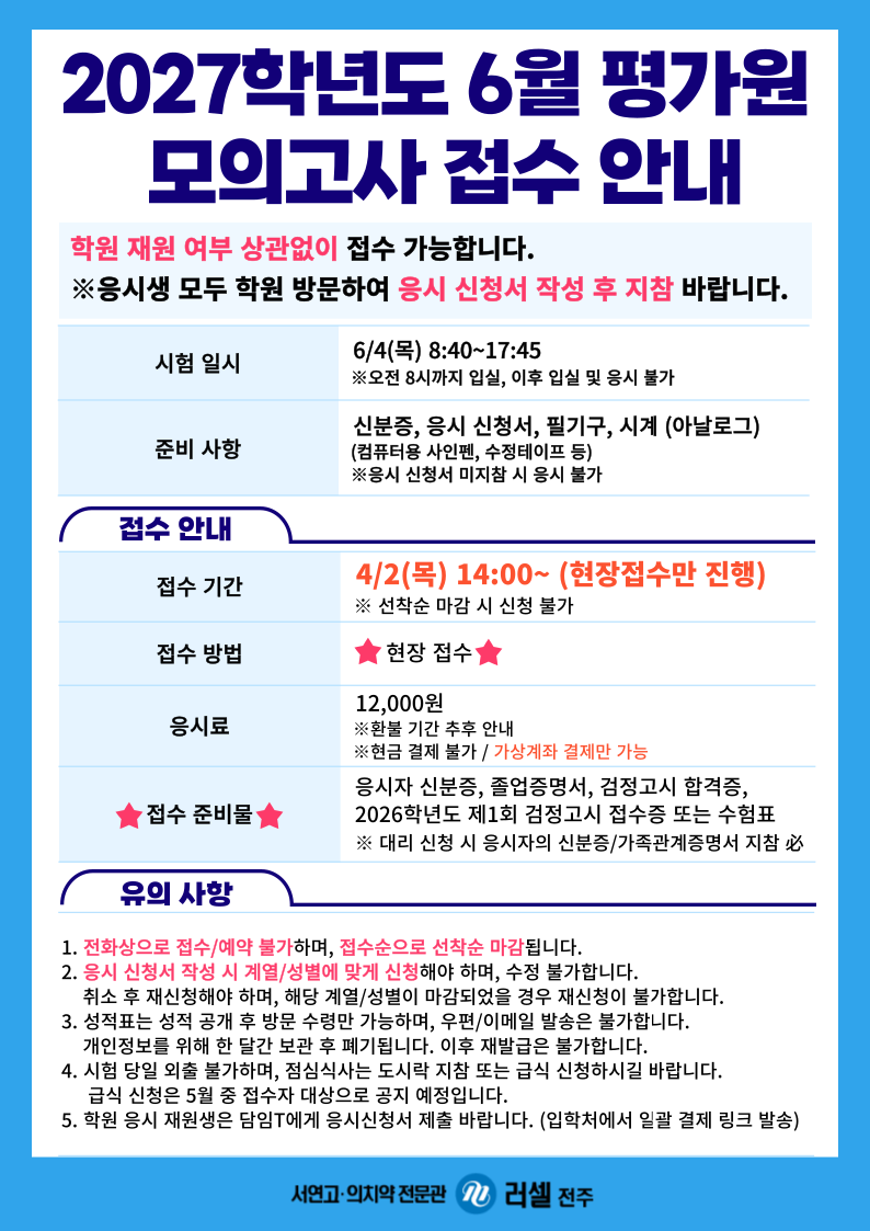 [·¯¼¿ ÀüÁÖ] 2027Çг⵵ 6¿ù Æò°¡¿ø ¸ðÀǰí»ç Á¢¼ö ¾È³»