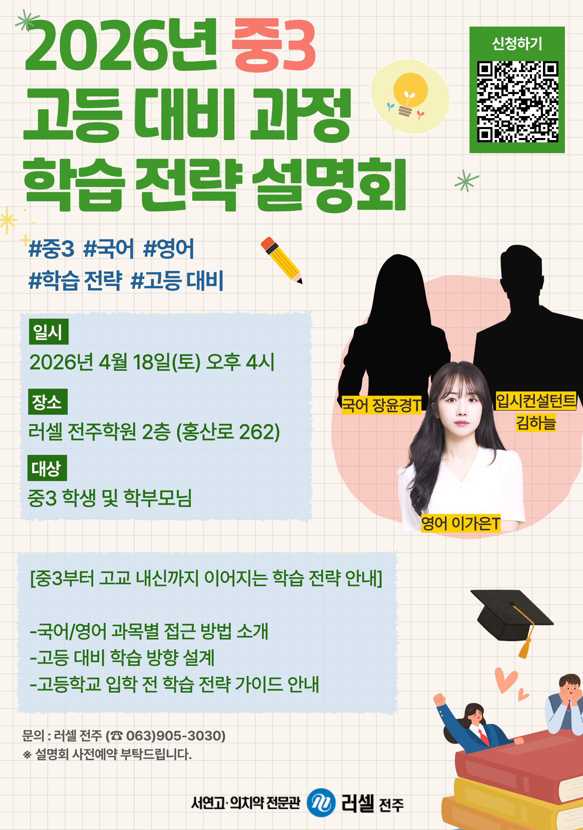 | [¼³¸íȸ] 4/18(Åä) Áß3 °íµî ´ëºñ ÇнÀ Àü·« ¼³¸íȸ ¾È³»(±¹¾î/¿µ¾î) | |||